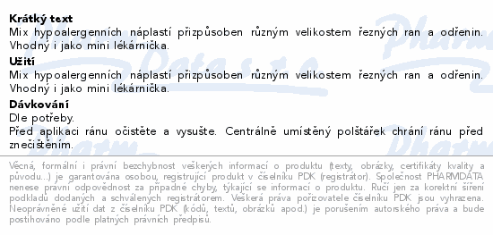 Mix hypoalergenních náplastí přizpůsoben různým velikostem řezných ran a odřenin. Vhodný i jako mini lékárnička.