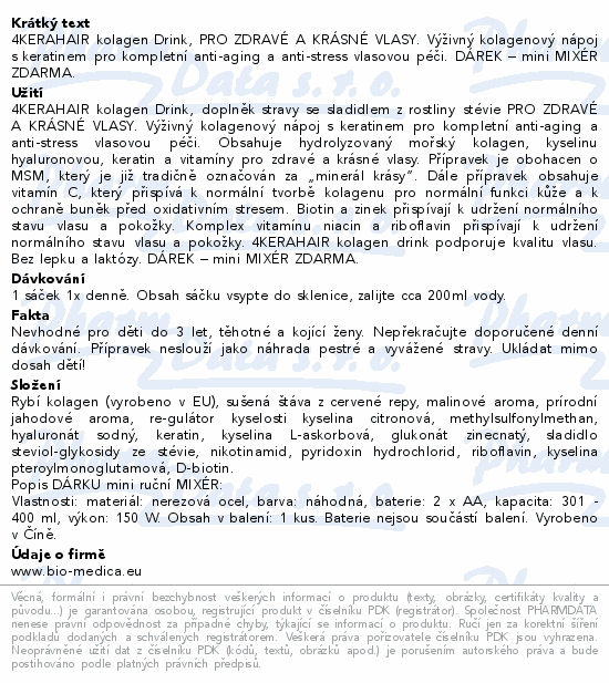 4KERAHAIR kolagen Drink, PRO ZDRAVÉ A KRÁSNÉ VLASY. Výživný kolagenový nápoj s keratinem pro kompletní anti-aging a anti-stress vlasovou péči. DÁREK – mini MIXÉR ZDARMA.