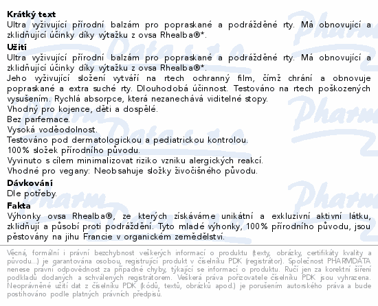 Ultra vyživující přírodní balzám pro popraskané a podrážděné rty. Má obnovující a zklidňující účinky díky výtažku z ovsa Rhealba®*.