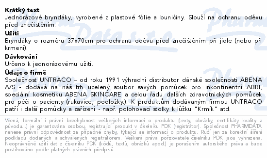 Jednorázové bryndáky, vyrobené z plastové fólie a buničiny. Slouží na ochranu oděvu před znečistěním.