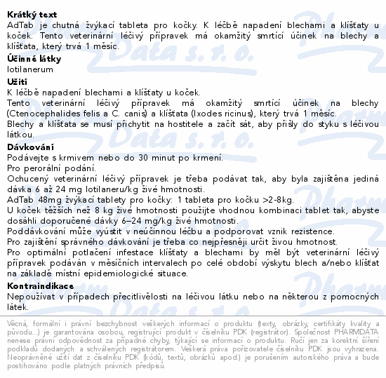 AdTab 48mg žvýkací tablety pro kočky >2-8kg 1ks