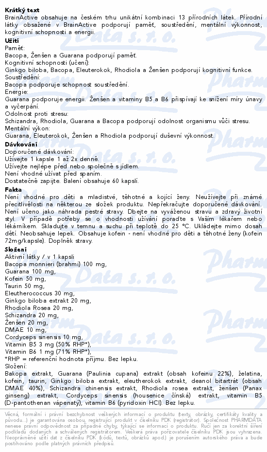 BrainActive obsahuje na českém trhu unikátní kombinaci 13 přírodních látek. Přírodní látky obsažené v BrainActive podporují paměť, soustředění, mentální výkonnost, kognitivní schopnosti a energii.