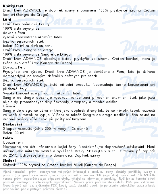 Dračí krev ADVANCE je doplněk stravy s obsahem 100% pryskyřice stromu Croton lechleri (Sangre de Drago).