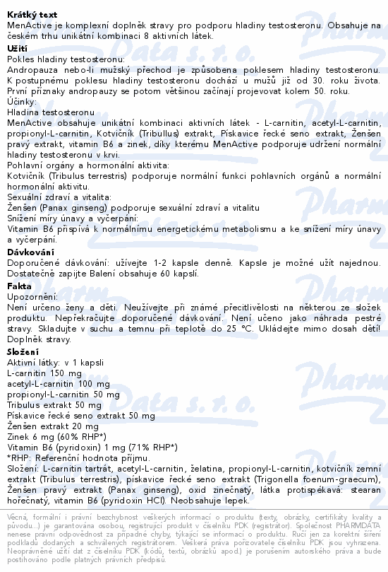 MenActive je komplexní doplněk stravy pro podporu hladiny testosteronu. Obsahuje na českém trhu unikátní kombinaci 8 aktivních látek.