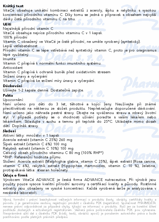 VitaCé obsahuje unikátní kombinaci extraktů z aceroly, šípku a rakytníku s vysokou koncentrací přírodního vitamínu C. Díky tomu se jedná o přípravek s obsahem nejvyšší dávky čistě přírodního vitaminu C na trhu.