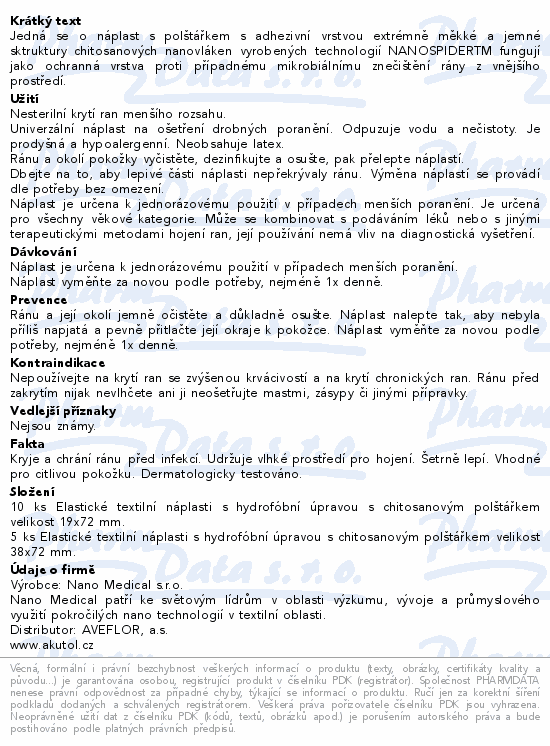 Jedná se o náplast s polštářkem s adhezivní vrstvou extrémně měkké a jemné sktruktury chitosanových nanovláken vyrobených technologií NANOSPIDERTM fungují jako ochranná vrstva proti případnému mikrobiálnímu znečištění rány z vnějšího prostředí.