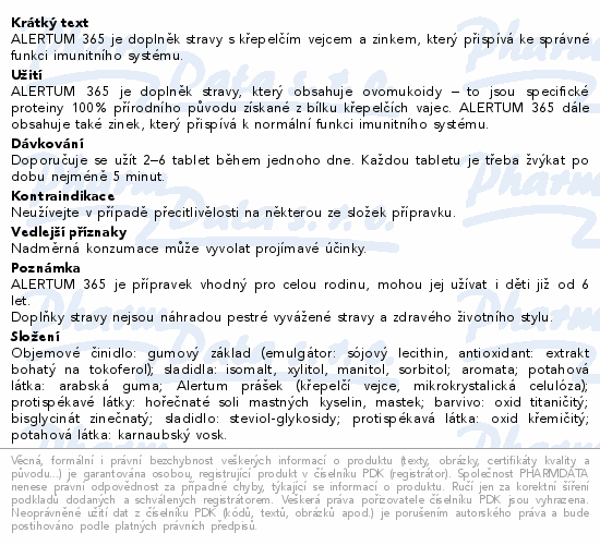 ALERTUM 365 je doplněk stravy s křepelčím vejcem a zinkem, který přispívá ke správné funkci imunitního systému.