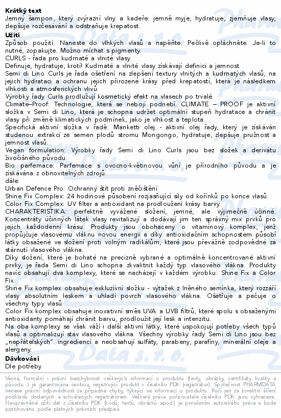 Jemný šampon, který zvýrazní vlny a kadeře: jemně myje, hydratuje, zjemňuje vlasy, zlepšuje rozčesávání a odstraňuje krepatost.