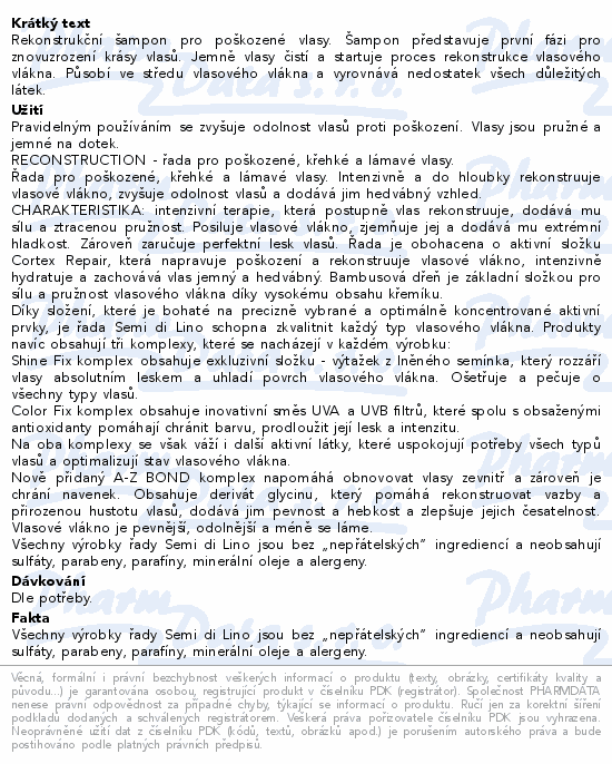 Rekonstrukční šampon pro poškozené vlasy. Šampon představuje první fázi pro znovuzrození krásy vlasů. Jemně vlasy čistí a startuje proces rekonstrukce vlasového vlákna. Působí ve středu vlasového vlákna a vyrovnává nedostatek všech důležitých látek.