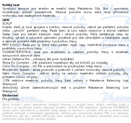 Vyvažující šampon pro snadno se mastící vlasy. Rebalance Oily Skin - vyrovnává, normalizuje, působí preventivně. Vlasová pokožka znovu získá svoji přirozenou rovnováhu bez nadbytečné mastnoty.