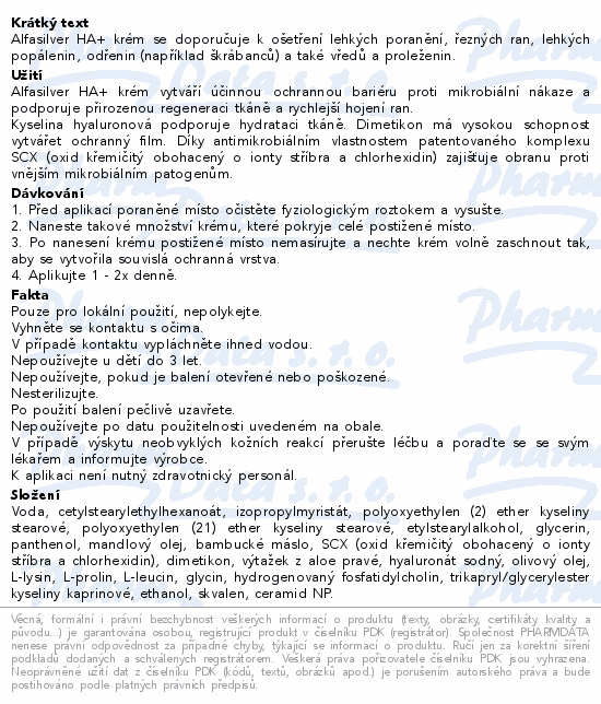Alfasilver HA+ krém se doporučuje k ošetření lehkých poranění, řezných ran, lehkých popálenin, odřenin (například škrábanců) a také vředů a proleženin.
