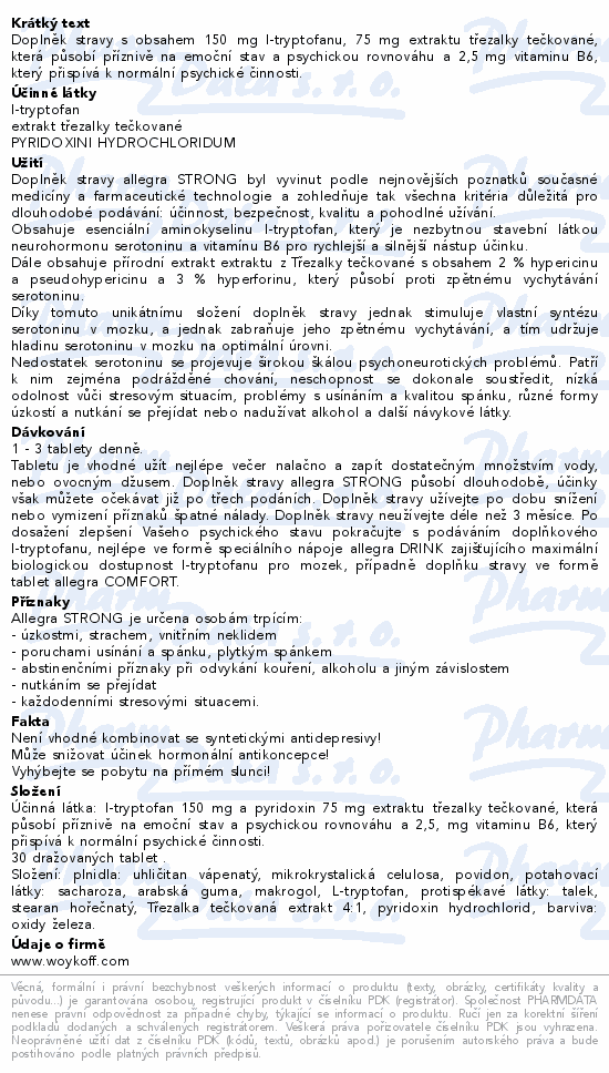 Doplněk stravy s obsahem 150 mg l-tryptofanu, 75 mg extraktu třezalky tečkované, která působí příznivě na emoční stav a psychickou rovnováhu a 2,5 mg vitaminu B6, který přispívá k normální psychické činnosti.