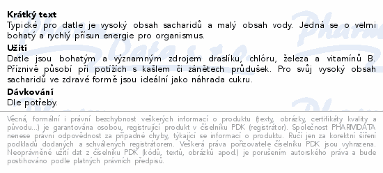 Typické pro datle je vysoký obsah sacharidů a malý obsah vody. Jedná se o velmi bohatý a rychlý přísun energie pro organismus.