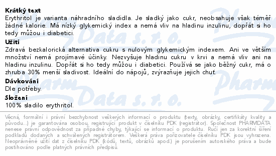 Erythritol je varianta náhradního sladidla. Je sladký jako cukr, neobsahuje však téměř žádné kalorie. Má nízký glykemický index a nemá vliv na hladinu inzulinu, dopřát si ho tedy můžou i diabetici.