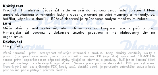 Prvotřídní Himalájská růžová sůl najde ve vaší domácnosti celou řadu uplatnění! Není uměle obohacena o minerální látky a obsahuje cenné přírodní vitamíny a minerály, vč. hořčíku, vápníku a draslíku. Růžové zbarvení je způsobeno malým množstvím železa.