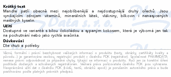 Mandle patří obecně mezi nejoblíbenější a nejdostupnější druhy ořechů. Jsou vynikajícím zdrojem vitamínů, minerálních látek, vlákniny, bílkovin i nenasycených mastných kyselin.