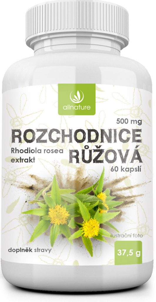 Doplněk stravy od značky Allnature je vyroben z extraktu kořene Rozchodnice růžové neboli Rhodiola rosea.