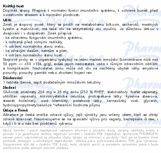 Doplněk stravy. Přispívá k normální funkci imunitního systému, k ochraně buněk před oxidativním stresem a k normální plodnosti.