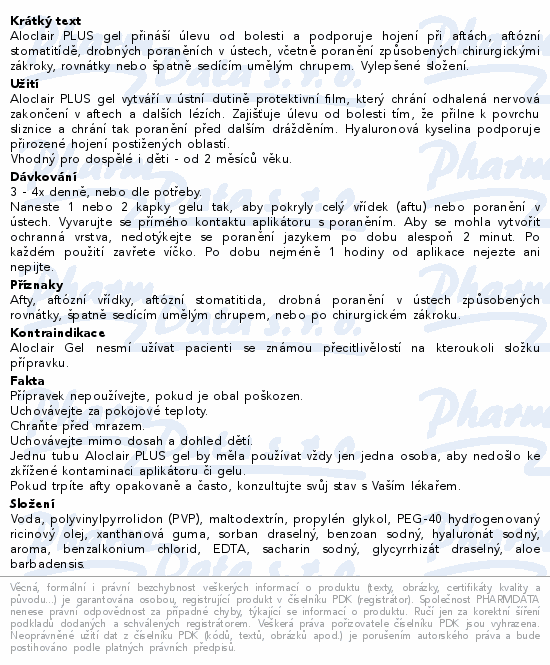 Aloclair PLUS gel přináší úlevu od bolesti a podporuje hojení při aftách, aftózní stomatitídě, drobných poraněních v ústech, včetně poranění způsobených chirurgickými zákroky, rovnátky nebo špatně sedícím umělým chrupem. Vylepšené složení.