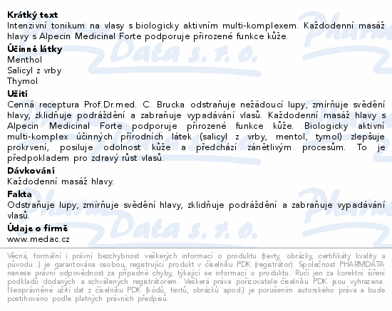 Intenzivní tonikum na vlasy s biologicky aktivním multi-komplexem. Každodenní masáž hlavy s Alpecin Medicinal Forte podporuje přirozené funkce kůže.