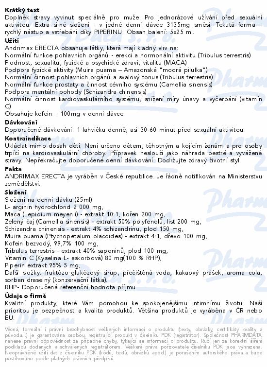 Doplněk stravy vyvinut speciálně pro muže. Pro jednorázové užívání před sexuální aktivitou. Extra silné složení - v jedné denní dávce 3135mg směsi. Tekutá forma – rychlý nástup a vstřebání díky PIPERINU. Obsah balení: 5x25 ml.