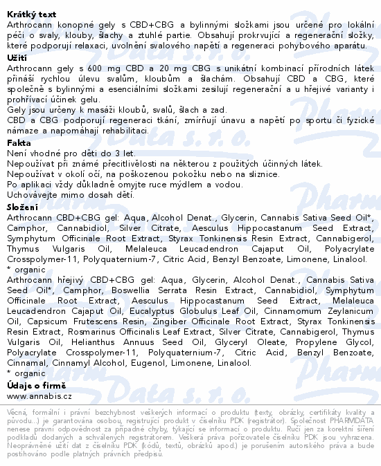 Annabis Arthrocann CBD gel+hřejivý CBD gel 2x75ml