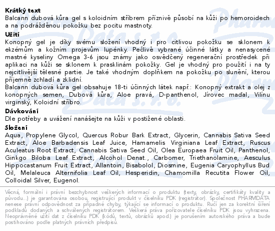 Balcann dubová kůra gel s koloidním stříbrem příznivě působí na kůži po hemoroidech a na podrážděnou pokožku bez pocitu mastnoty.