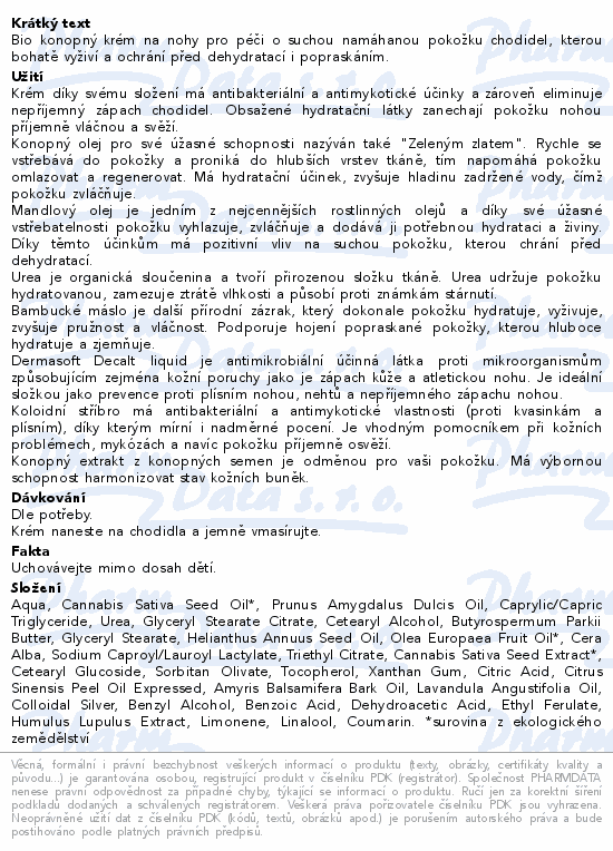 Bio konopný krém na nohy pro péči o suchou namáhanou pokožku chodidel, kterou bohatě vyživí a ochrání před dehydratací i popraskáním.