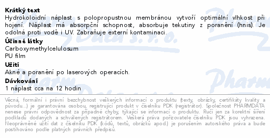 Hydrokoloidní náplast s polopropustnou membránou vytvoří optimální vlhkost při hojení. Náplast má absorpční schopnost, absorbuje tekutiny z poranění (hnis). Je odolná proti vodě i UV. Zabraňuje externí kontaminaci.