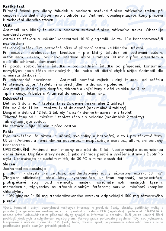 Přírodní řešení pro klidný žaludek a podporu správné funkce zažívacího traktu při cestování, po dietní chybě nebo v těhotenství. Antimetil obsahuje zázvor, který přispívá k zachování klidného trávení.