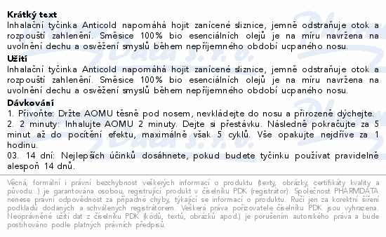 AOMU inhalační tyčinka pro úlevu od rýmy Anticold