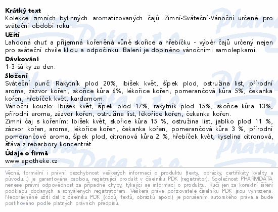 Kolekce zimních bylinných aromatizovaných čajů Zimní-Sváteční-Vánoční určené pro sváteční období roku.