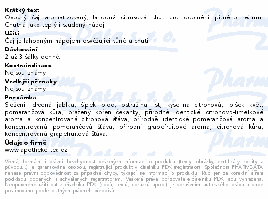 Ovocný čaj aromatizovaný, lahodná citrusová chuť pro doplnění pitného režimu. Chutná jako teplý i studený nápoj.