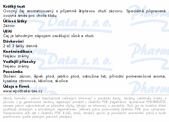 Ovocný čaj aromatizovaný s příjemně štiplavou chutí zázvoru. Speciálně připravená ovocná směs pro chvíle klidu.