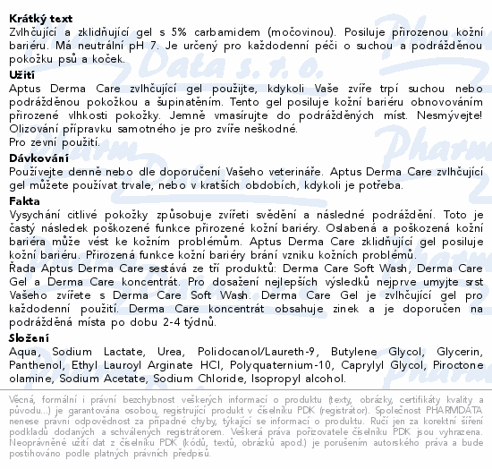 Zvlhčující a zklidňující gel s 5% carbamidem (močovinou). Posiluje přirozenou kožní bariéru. Má neutrální pH 7. Je určený pro každodenní péči o suchou a podrážděnou pokožku psů a koček.