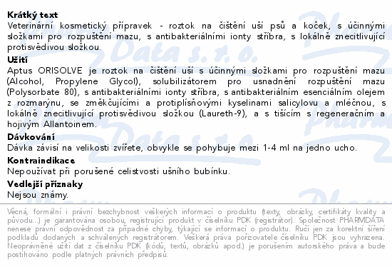 APTUS Orisolve roztok pro čišt.uší vet.sol.150ml