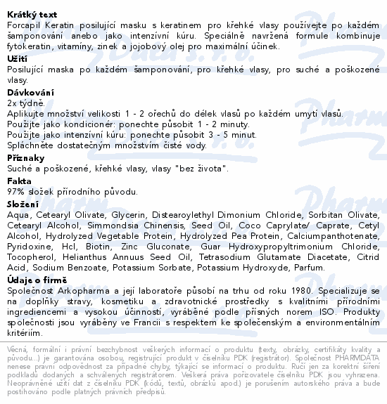 Arkopharma FORCAPIL Keratin posil.maska 200ml