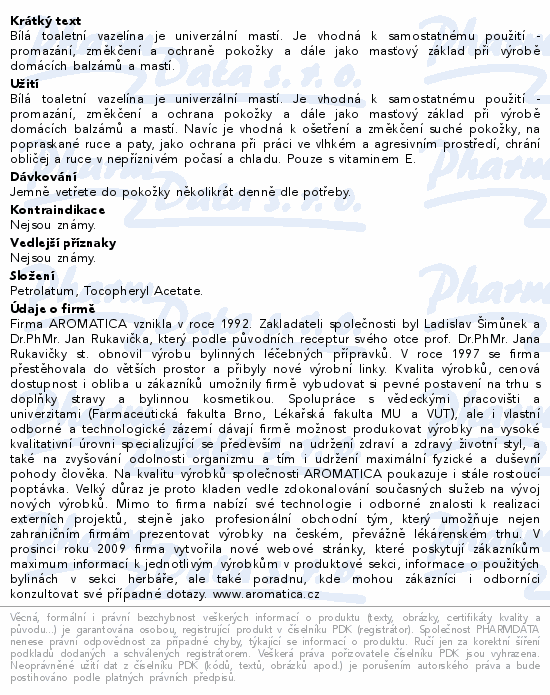| Výrobce: | AROMATICA CZ S.R.O. |