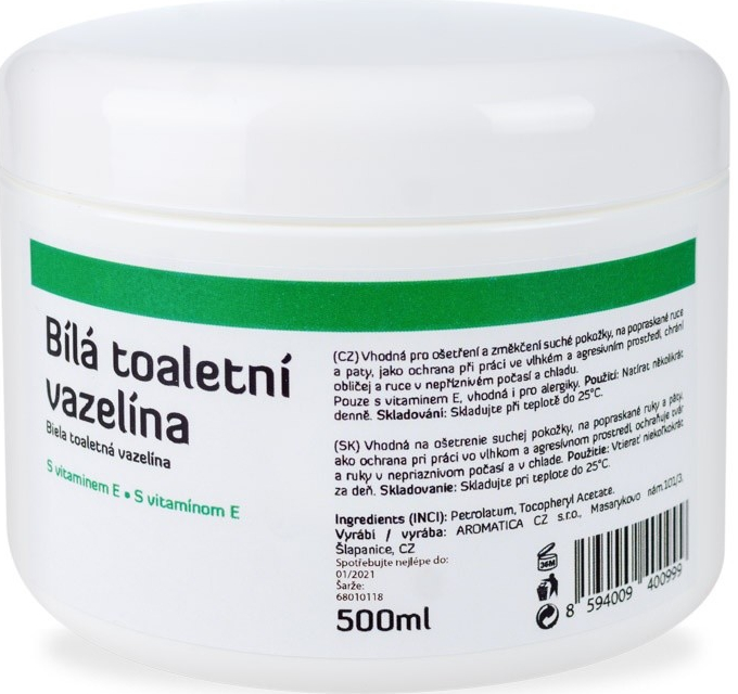 Bílá toaletní vazelína je univerzální mastí. Je vhodná k samostatnému použití - promazání, změkčení a ochraně pokožky a dále jako masťový základ při výrobě domácích balzámů a mastí.