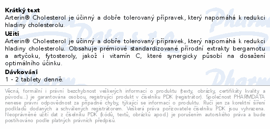Arterin® Cholesterol je účinný a dobře tolerovaný přípravek, který napomáhá k redukci hladiny cholesterolu.