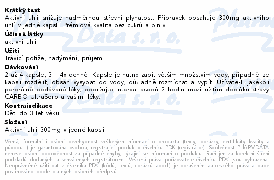Aktivní uhlí snižuje nadměrnou střevní plynatost. Přípravek obsahuje 300mg aktivního uhlí v jedné kapsli. Prémiová kvalita bez cukrů a plniv.