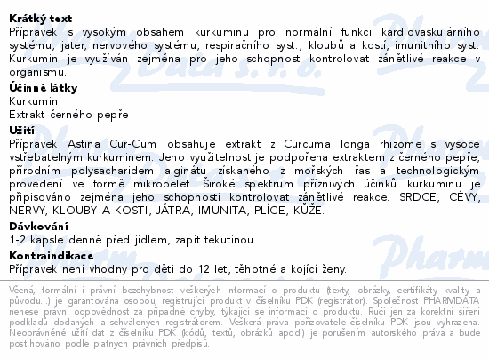 Přípravek s vysokým obsahem kurkuminu pro normální funkci kardiovaskulárního systému, jater, nervového systému, respiračního syst., kloubů a kostí, imunitního syst. Kurkumin je využíván zejména pro jeho schopnost kontrolovat zánětlivé reakce v organismu.