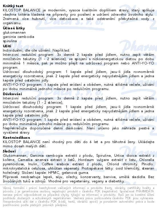 KILOSTOP BALANCE je moderním, vysoce kvalitním doplňkem stravy, který splňuje všechna kritéria kladená na přípravky pro posílení a udržení zdravého životního stylu. Znamená více hubnutí, více detoxikace a také odstranění přebytečné vody z organismu.
