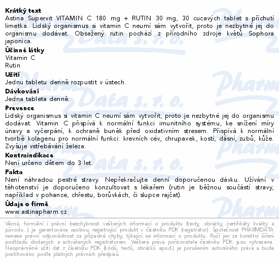 Astina Supervit C s rutinem limetka tbl.30