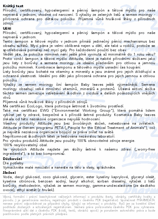 Přírodní, certifikovaný, hypoalergenní a pěnivý šampón a tělové mýdlo pro naše nejmenší v jednom, vhodné od narození. S výtažky ze zelených listů a semen moringy - přirozená ochrana pro dětskou pokožku. Příjemná vůně hruškové šťávy z přírodních zdrojů.