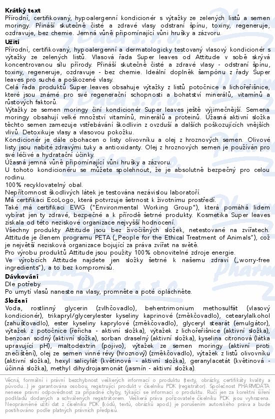 ATTITUDE Kondicionér vyživující 240ml
