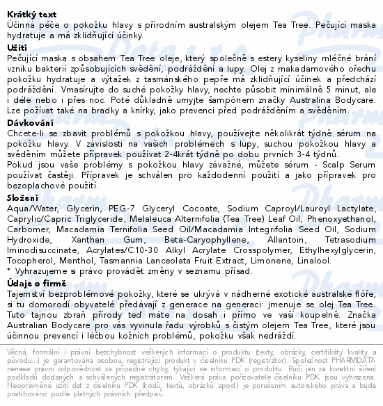 Účinná péče o pokožku hlavy s přírodním australským olejem Tea Tree. Pečující maska hydratuje a má zklidňující účinky.