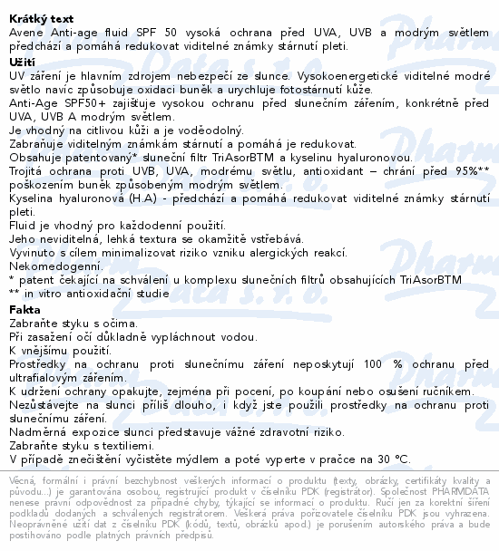 Avene Anti-age fluid SPF 50 vysoká ochrana před UVA, UVB a modrým světlem předchází a pomáhá redukovat viditelné známky stárnutí pleti.