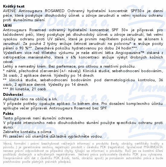 AVENE Antirougeurs ROSAMED Ochranný hydratační koncentrát SPF50+ je denní péče, která poskytuje dlouhodobý účinek u zdroje zarudnutí a velmi vysokou ochranu proti slunečnímu záření.