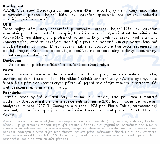 AVENE Cicalfate+ Obnovující ochranný krém 40ml. Tento hojivý krém, který napomáhá přirozenému procesu hojení kůže, byl vytvořen speciálně pro citlivou pokožku dospělých, dětí a kojenců.